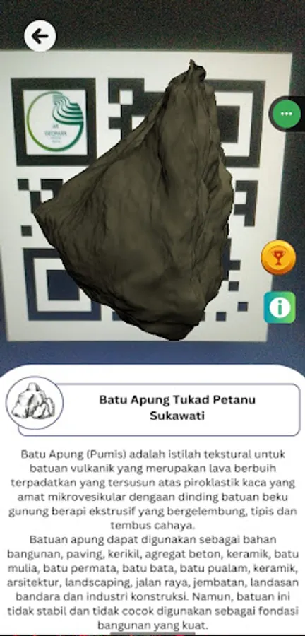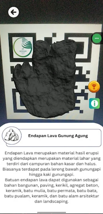 GeoversAR is an innovative application in the introduction of geological rock education. Using augmented reality technology, GeoversAr provides a unique exploration experience through the earthly exhibition space at the Batur Geopark Museum. With GeoversAR, users can interactively explore these rocks and gain an in-depth understanding of their geological characteristics and origins. This application brings users an interesting and interactive learning experience, helping to increase their understanding of geology in an interesting and fun way.