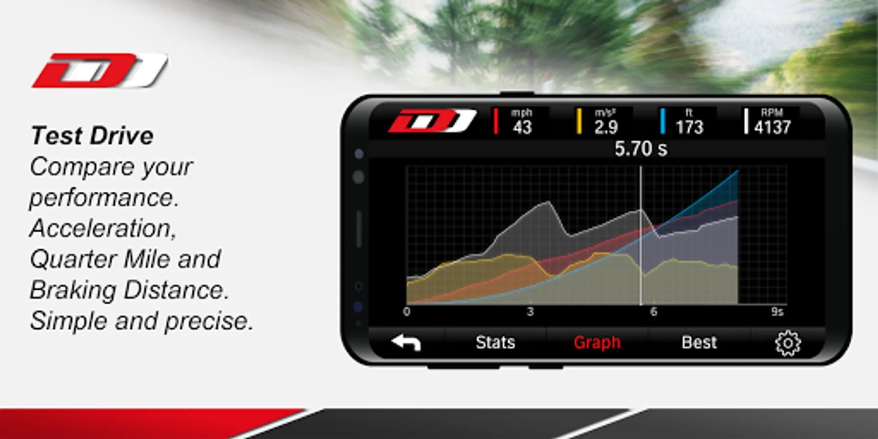 Compare your performance with the precision time measurement of Acceleration, Distance and Braking Distance.