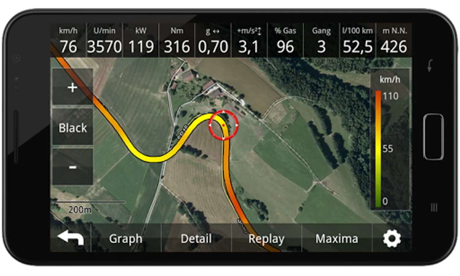 Track- and data recording including video with professional analysis tools.