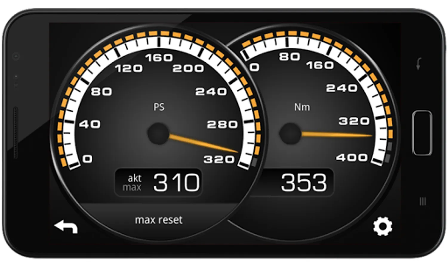 Shows real time engine power and torque