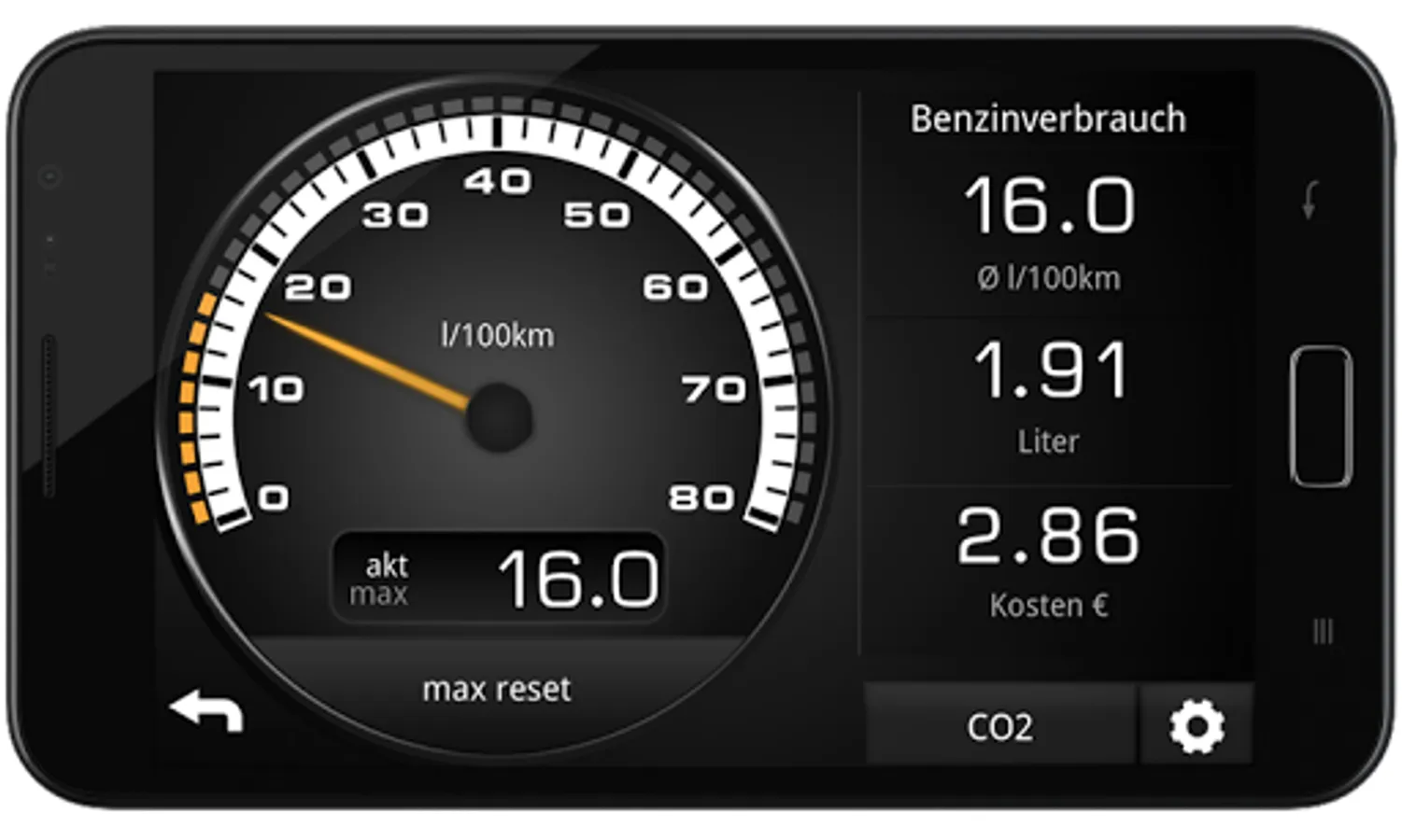 Shows fuel consumption and CO2 emission including fuel cost