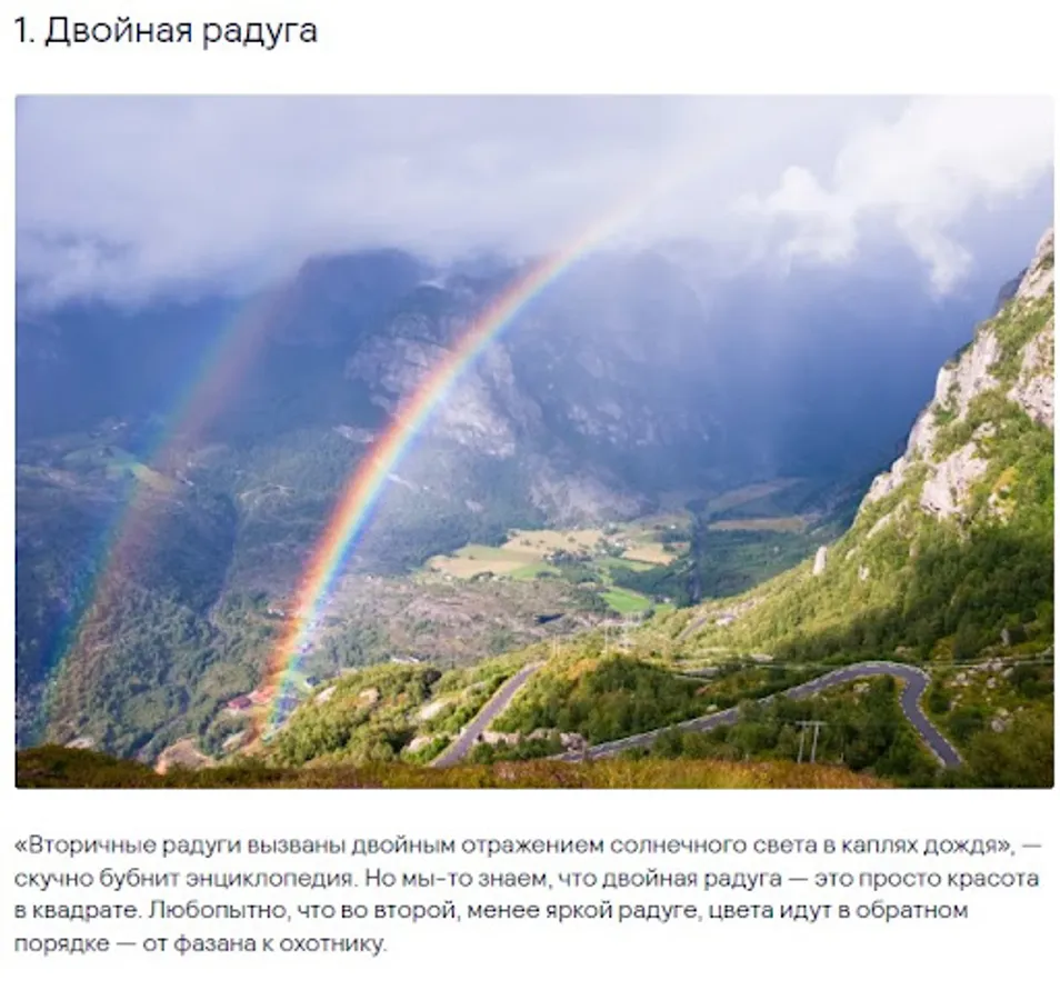 Тройное солнце, огненная радуга, перламутровые облака и тучи в виде вымени — честное слово, бывает и не такое! Собрали самые необычные природные феномены, которые можно наблюдать в разных уголках мира.
