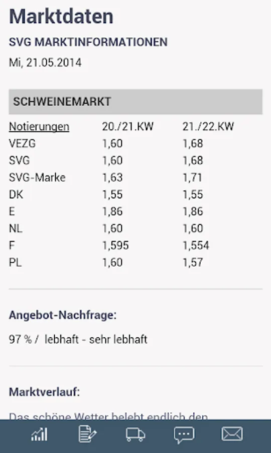 Users can log deliveries in a closed area and view evaluations, current market information and news.