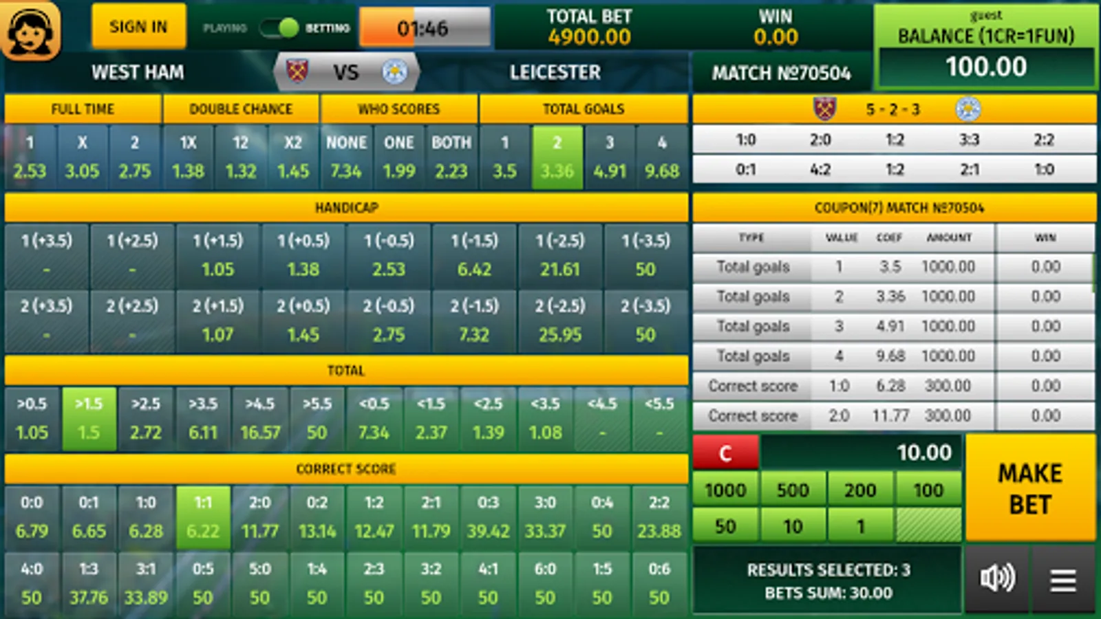 - Choose 1 of 2 teams participating in a match that will surely win!