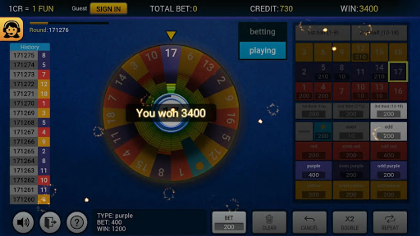 ★ just 18 sectors and more than 30 betting options;