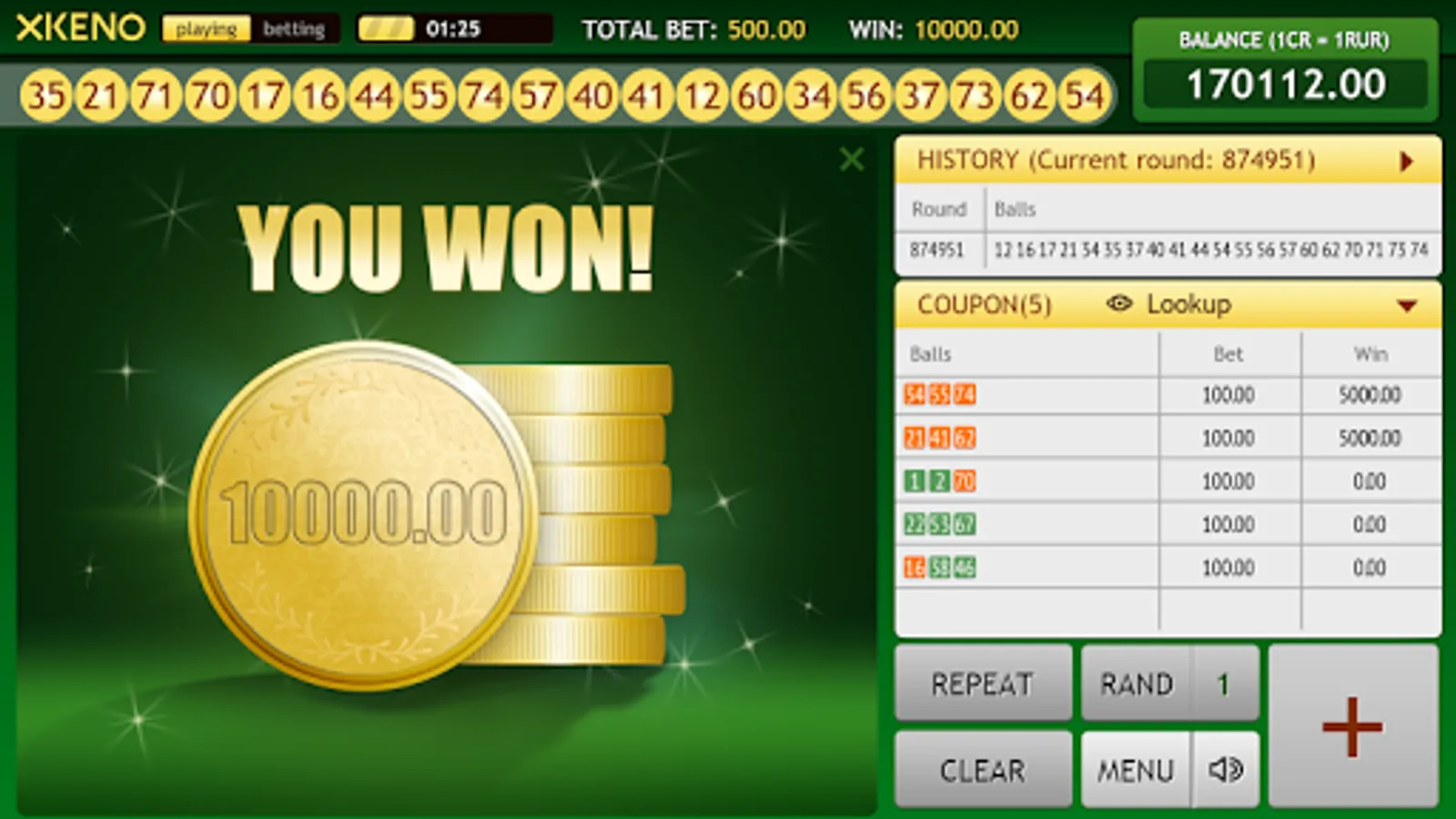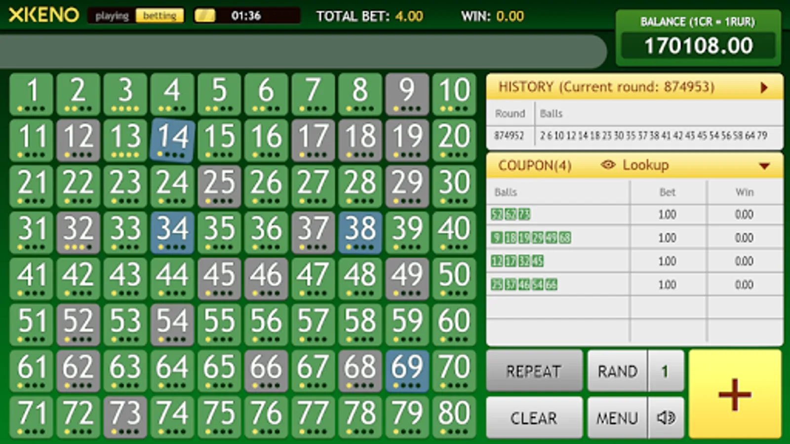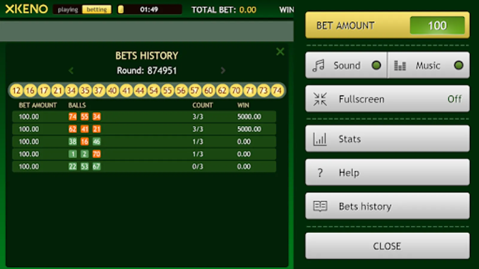 Thanks to simple rules, XKeno will be interesting both to enthusiastic gamblers and newcomers. Drawings run every 2 minutes, which is ideal for those who do not like to wait and are ready to win!