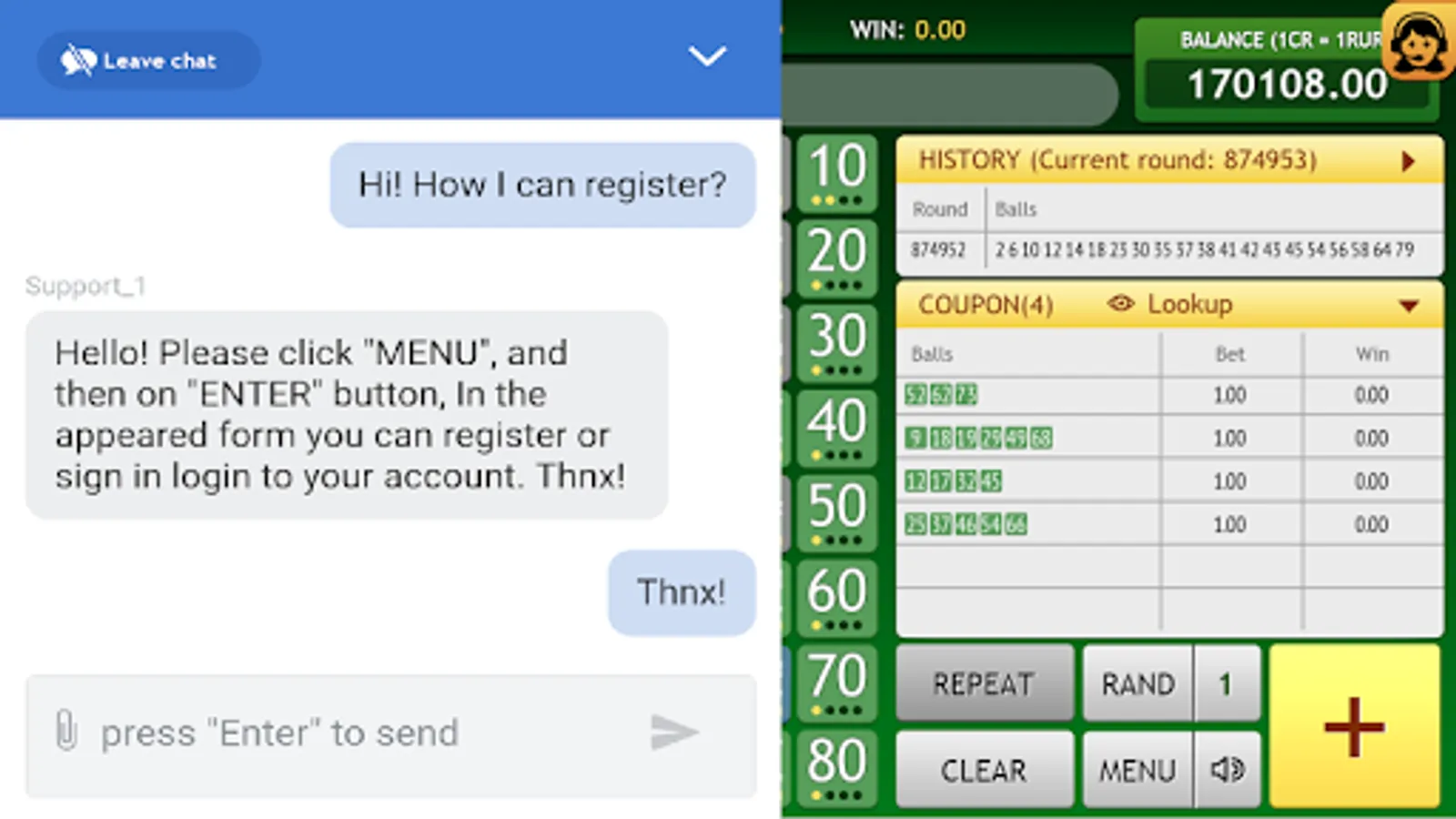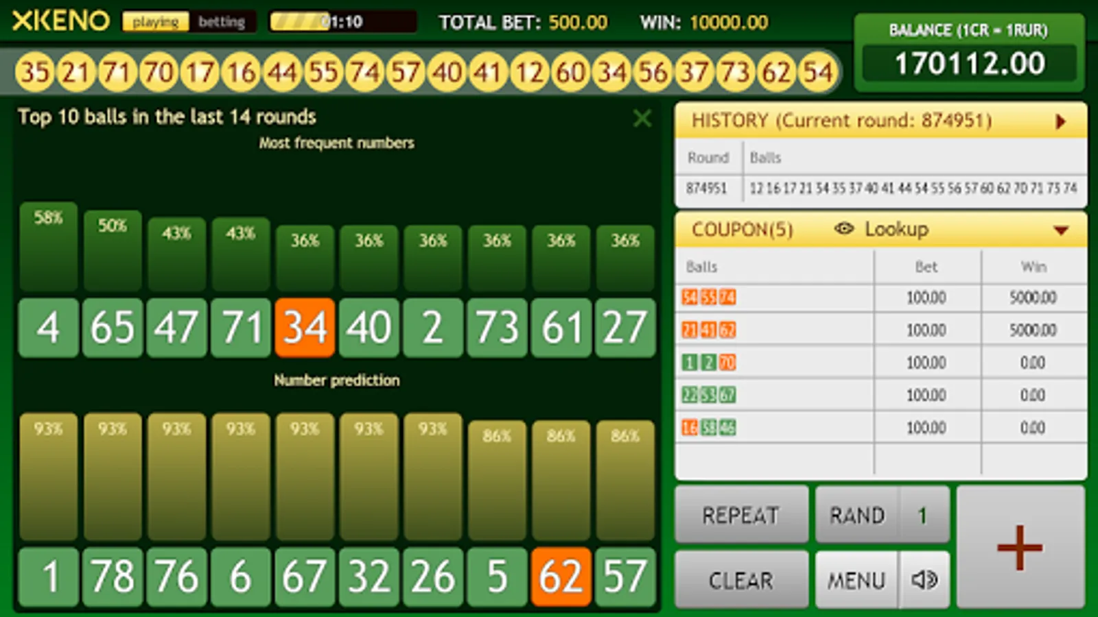 ⬜ Choose the most popular numbers in online mode
