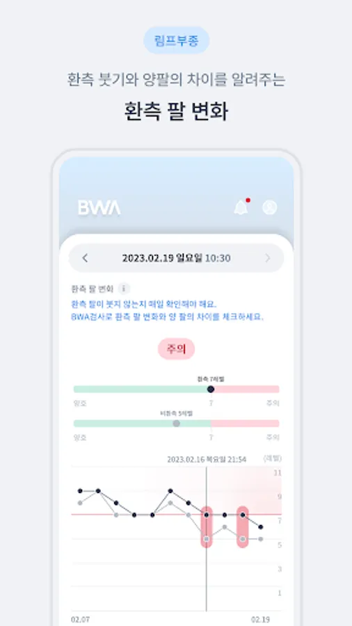 Compare the extracellular water level of the leg and the change in the affected arm with those of the same age group, which can detect health abnormalities at an early stage.