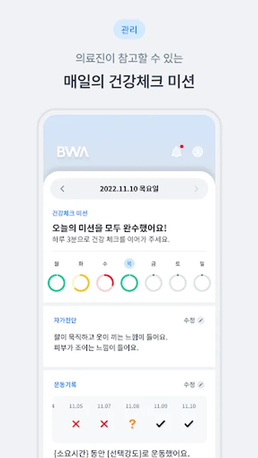 You can conduct a BWA test by linking BWA ON, a home body water dispenser, and check the explanation of the results. Check your body changes through periodic BWA tests and check the process of improvement.