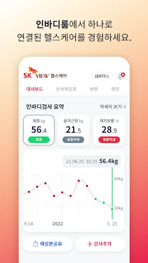 * If you connect the InBodyBAND3 product to the SK VIEW healthcare app, you can receive more detailed InBody results, steps, heart rate, sleep time, and other data. You can also receive phone and SMS notifications.