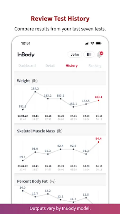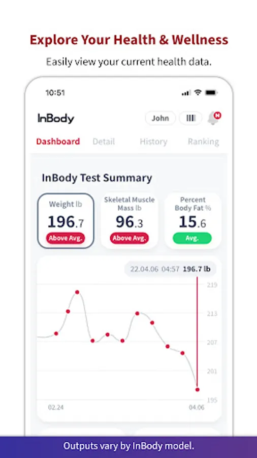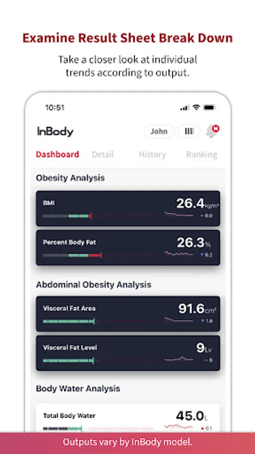- An improved app dashboard, which displays data on your latest InBody Tests, blood pressure outputs, daily activity levels, body composition goals, and nutritional progress.