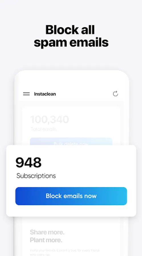 For Example, On a single click you can delete all mails sent by Instaclean.app or empty the spam folder or mails that are bigger than 5 MB.