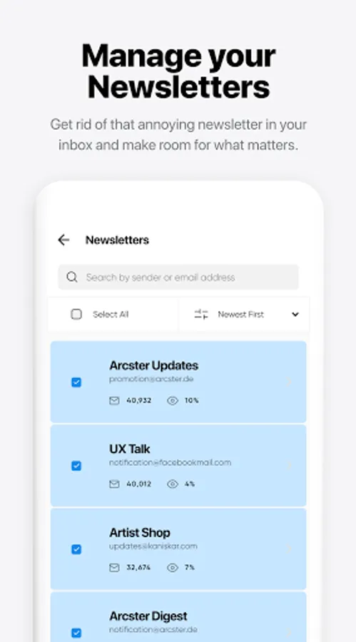 - If our algorithm is not able to list down any of the newsletter that you have received, you can manually enter the sender address and block emails from them.