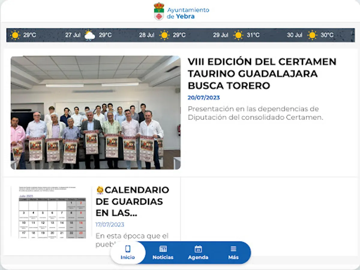 Yebra Town Hall. Information on local news, cultural and sports agenda, street map with geolocator, useful telephone numbers, bus schedule, notifications.