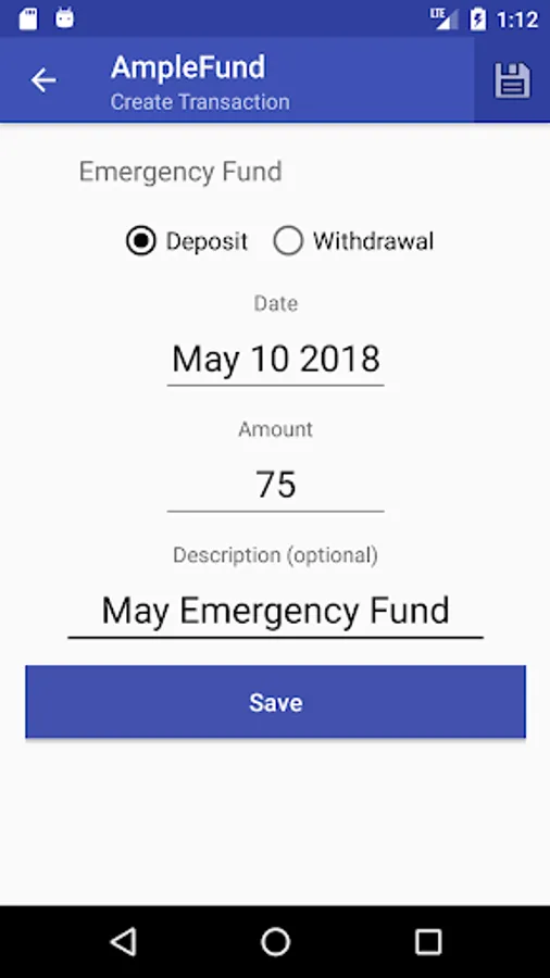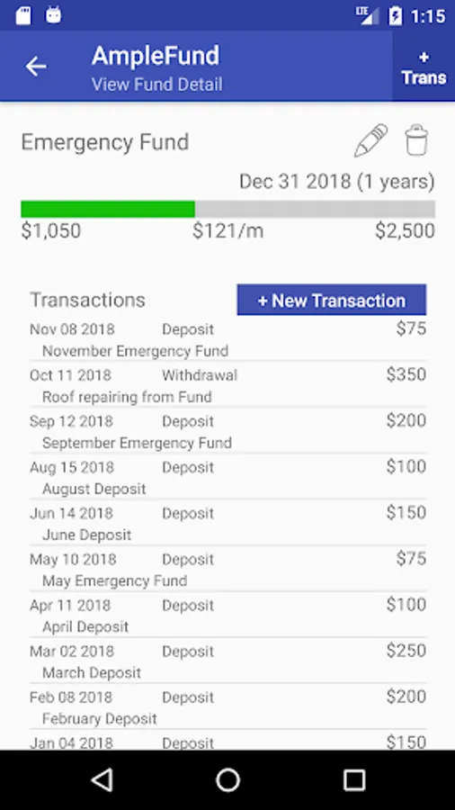 2. Add any Deposit or Withdrawal from Fund Detail screen.