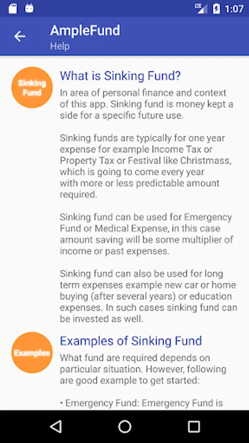 ✓ Emergency Fund: Emergency Fund is one of very important Sinking Fund. There should be at least 3 month of income in Emergency Fund and it should be strictly be used for Emergencies.
