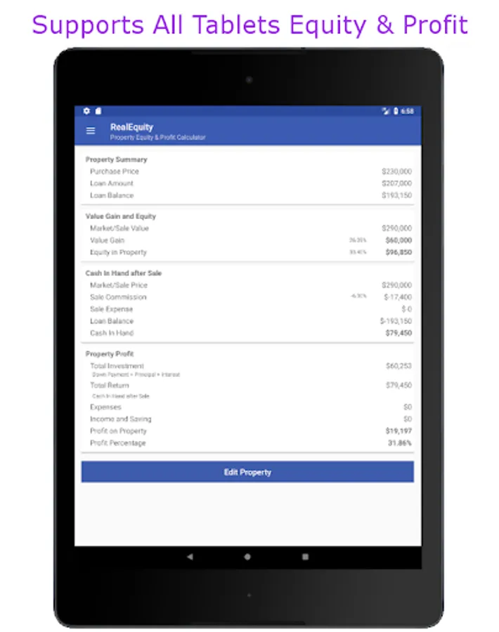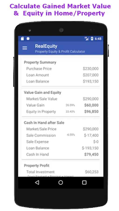 Whether your are current or future Home Owner or Real Estate Investor, RealEquity is must have tool to keep track of Property Equity & Profit.