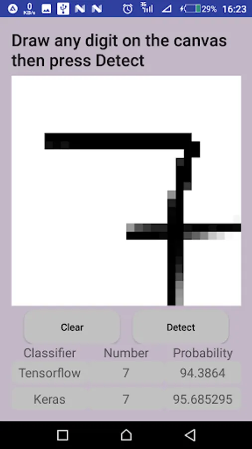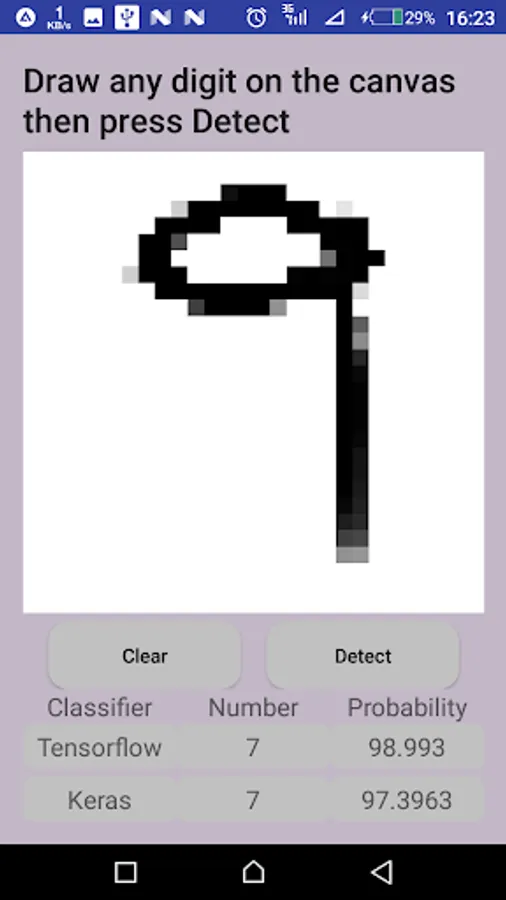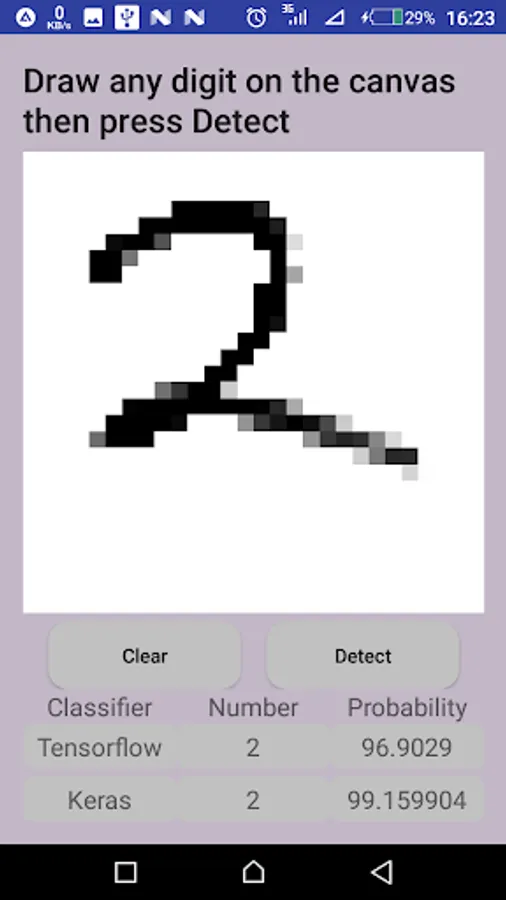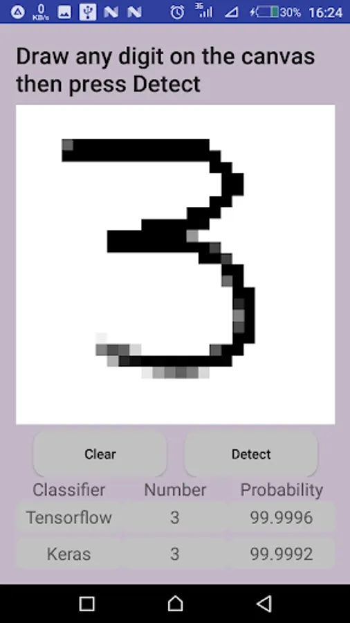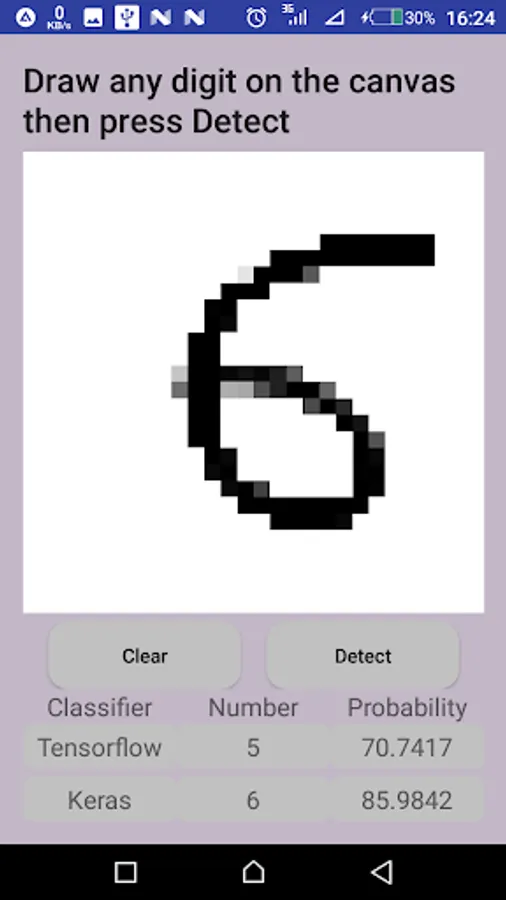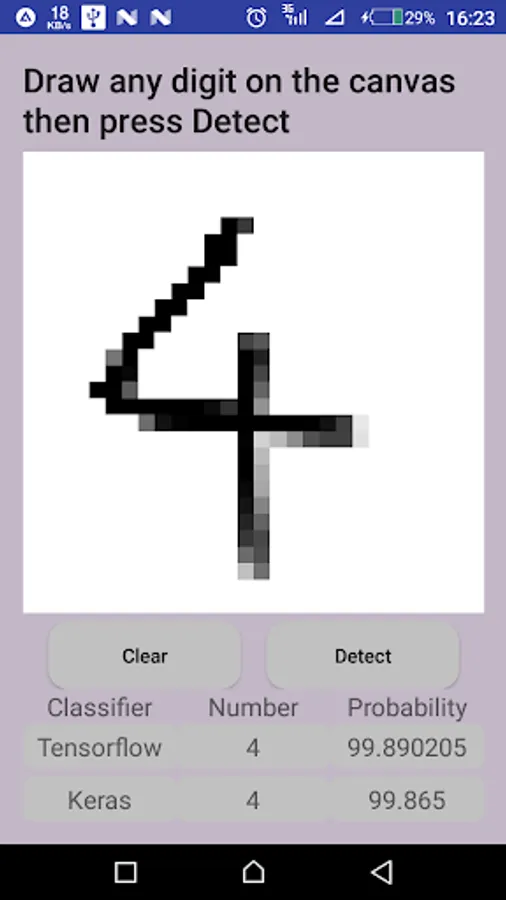 This application uses a pre-trained neural net model to preform inference on the input the user draws on the canvas.