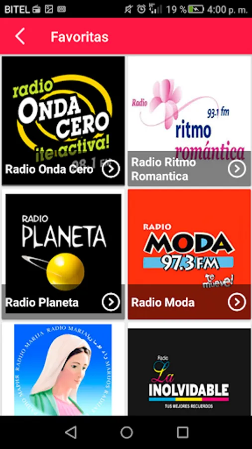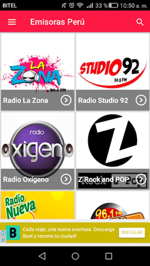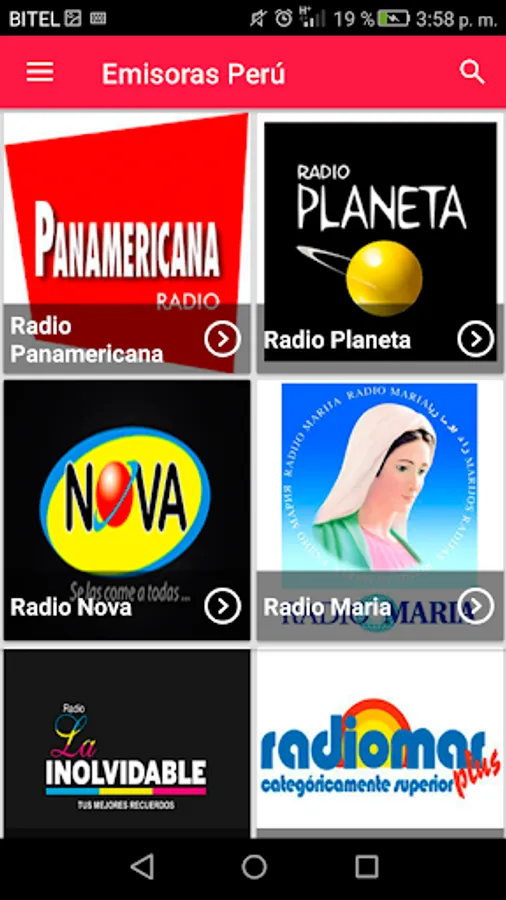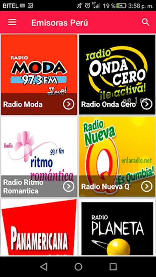 Radio Ritmo Romántica, Radio Moda moves you, Radio RPP, Radio La Zona, Radio Onda Cero, Radio Studio 92, Radio Oxigeno, Radio Z Rock & Pop, Radio Nueva Q, Radio la Kalle, Radio Capital, Radio Corazón, Radio Amor, Radio Panamericana, Radio La Karibeña, Radio Planeta, Radio Nova, Radio Oasis, Radio Felicidad, Radio María, Radio Bethel, Radio Unforgettable, Radio Mar Plus, Radio Turbo Mix, Radio UNO, Radio Bacán, Radio Inca, Radio Frequency Mix, Radio Telestereo, Radio Mágica, Retro Radio, Radio Libertad, Radio Matucana, Radio Peru Folklore, Radio Cumbia Mix, Radio Comas RC, Double Union, Double N Cajamarca, Radio Huancayo, Radio 1550 Peru, Radio Rokola, Radio Kontiki Intercultural, Radio La Preferida .