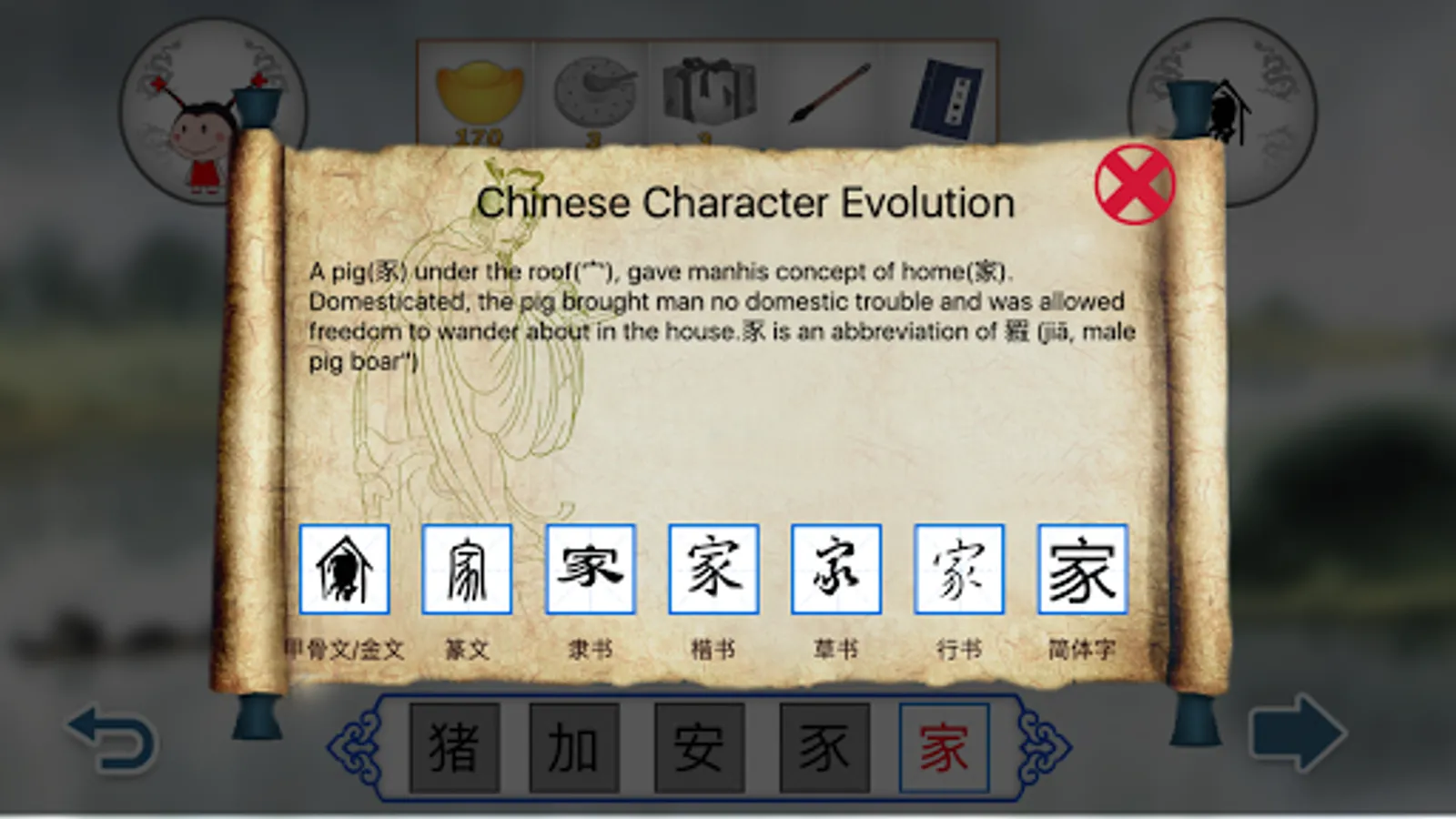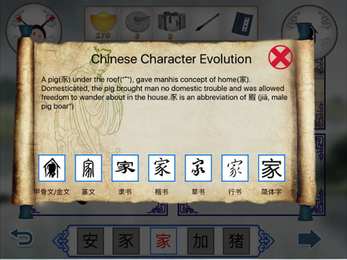 The game is a creative and easy-to-hand-on game. to kids,will cultivate their cognition to the forms of Chinese Characters and their interests. In the game, riddles, clues, answers and explanations are all illustrated and contained Chinese People wisdom and ancient culture.