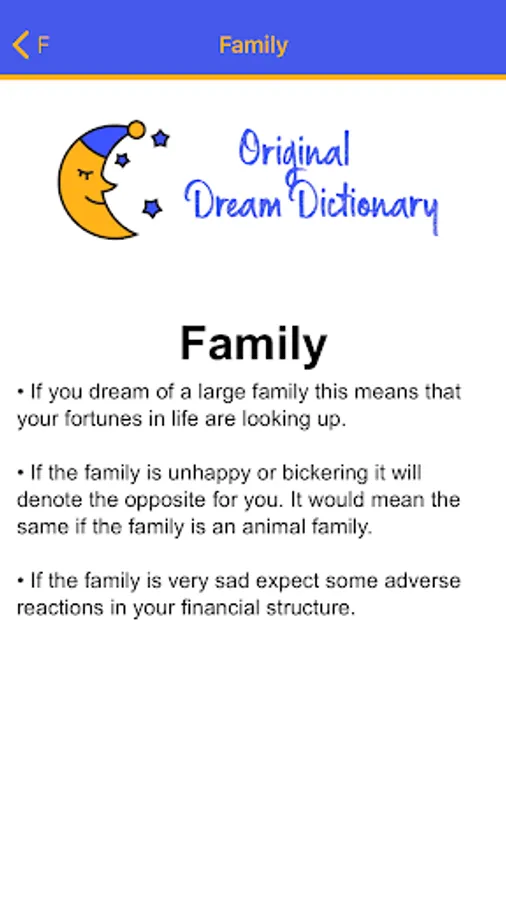 The ORIGINAL Dream Dictionary! You'll want to keep this handy app by your bedside at all times. It includes a huge listing of items that could appear in your dreams and gives you the definition of what those items might mean to you in your waking world. Happy Dreams!