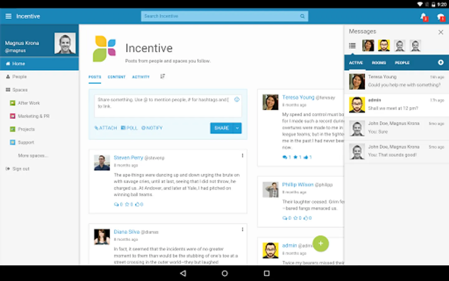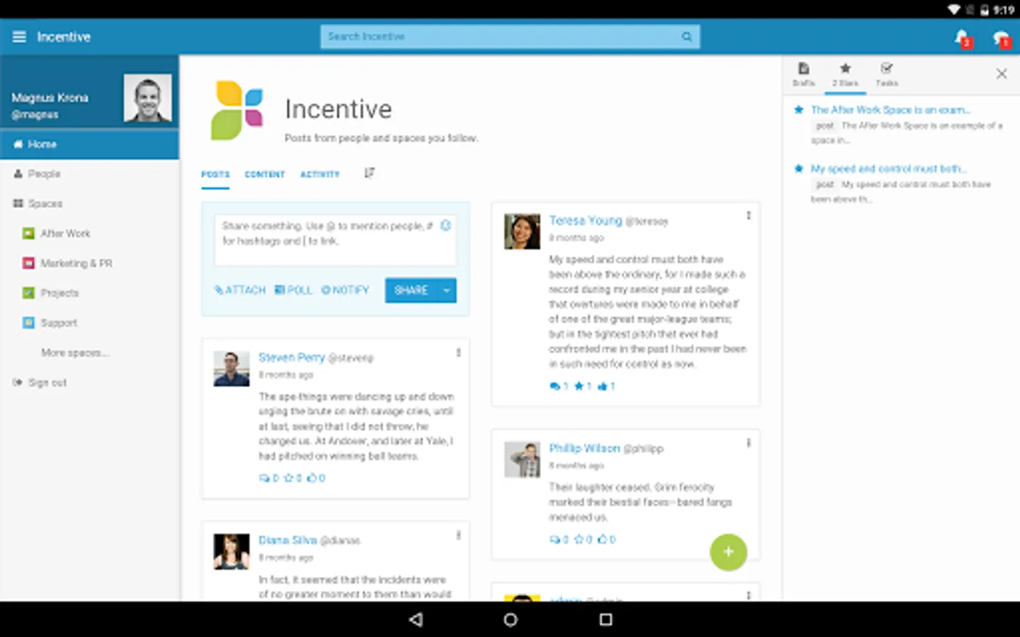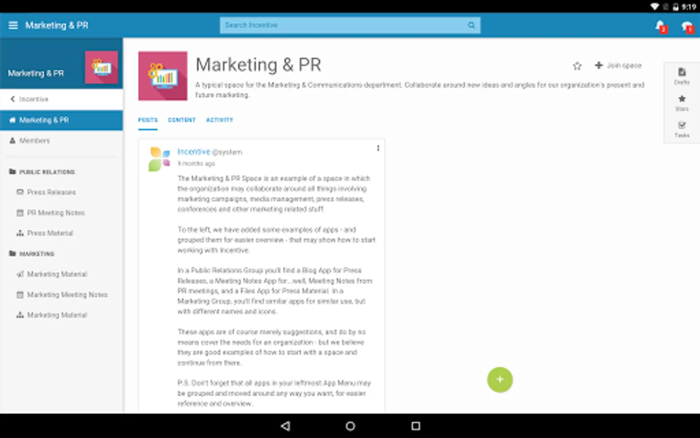 • Get instant access to all Incentive collaborative features like blogs, wikis, tasks, photo albums and much more.