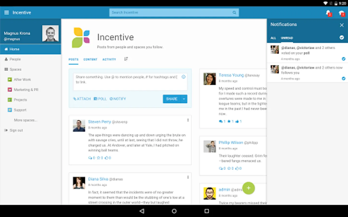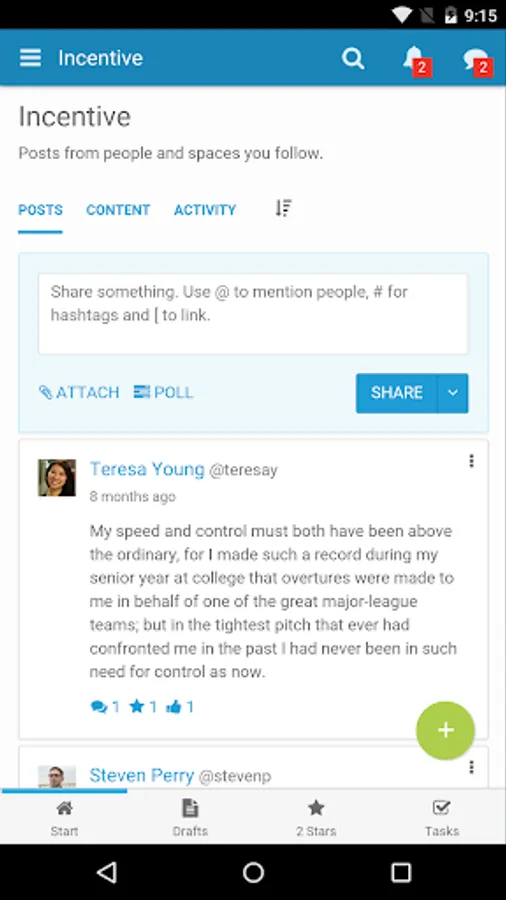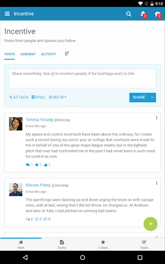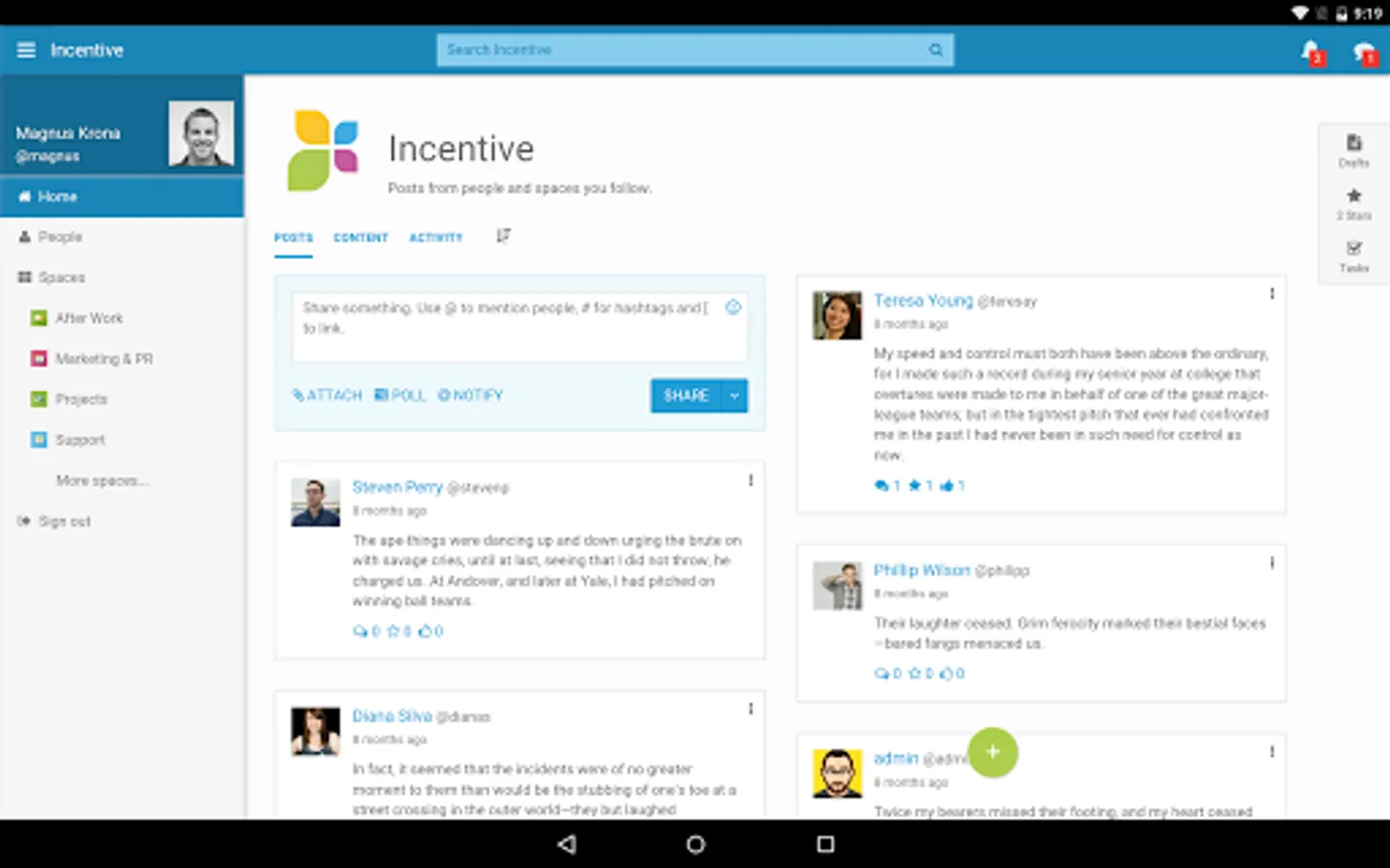 • Get instant access to all Incentive collaborative features like blogs, wikis, tasks, photo albums and much more.