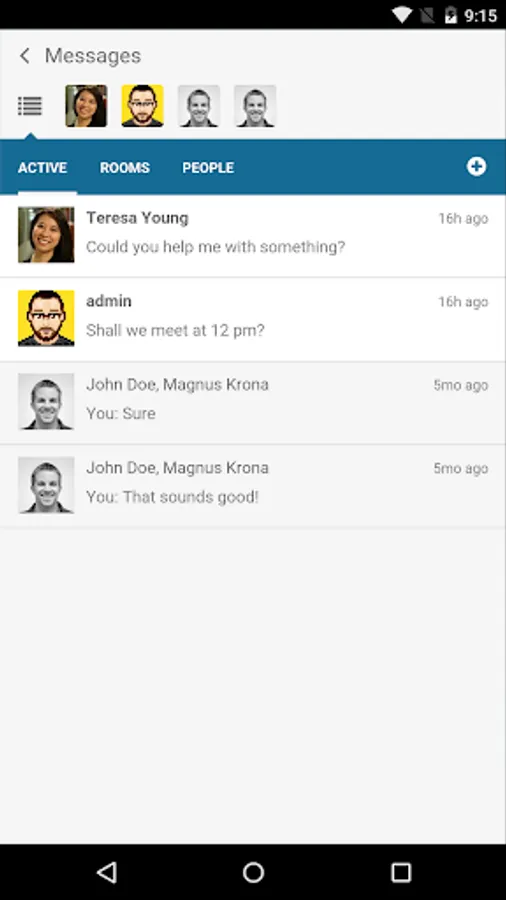 • Connect with anyone in your organization, in either private conversations or team chat rooms.