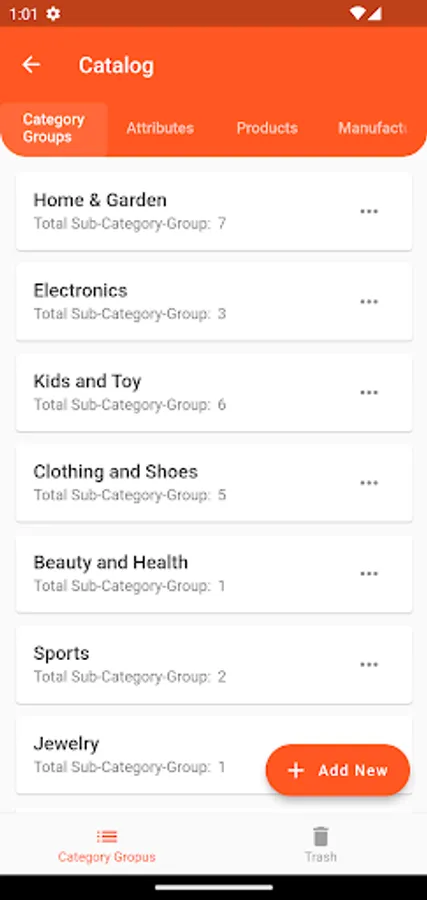 4. Catalog management: Merchants can manage their product catalog. They can create Product groups, sub-groups and categories, and products from the app.