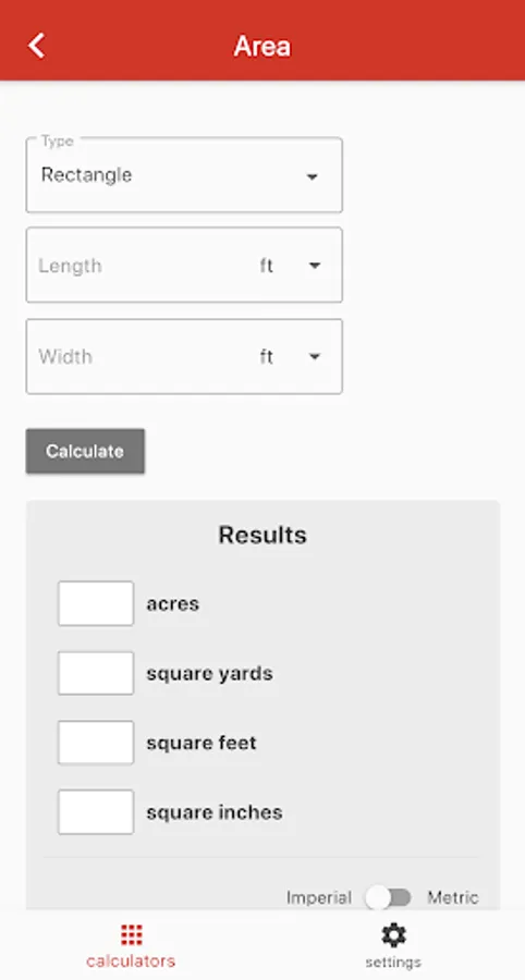 Enter dimensions in inches, feet, yards, centimeters, or meters. Get results in US customary or metric measurements.