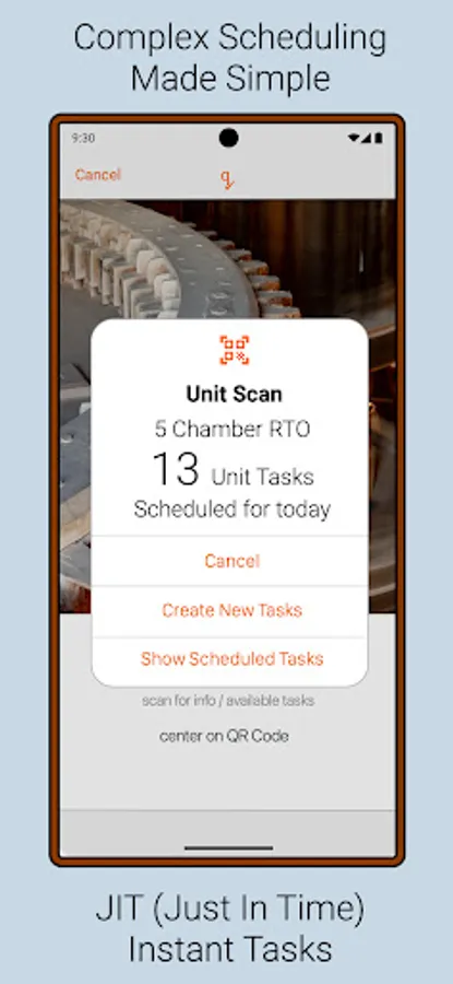 Incheq allows codes to be added to serviceable parts. When it checks the code, our machine algorithms find and connect with any tasks due for whatever reason. No searching, typing or calling anything or anyone.