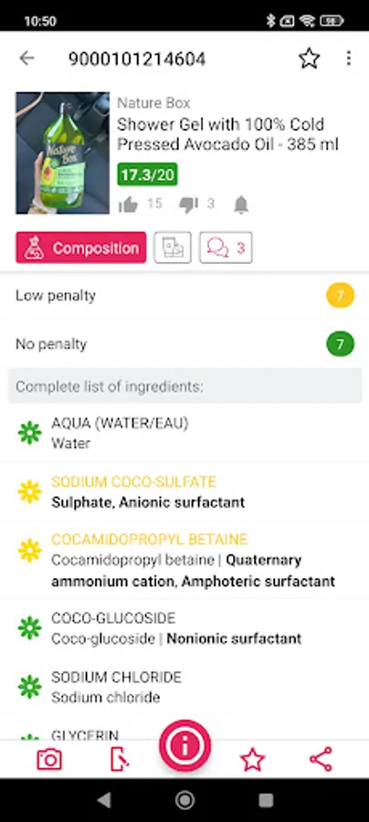 • Discover the detailed composition of a product by scanning its barcode or searching for it using its name or brand. It is not in our database yet? Create a user account to add product photos and ingredients to receive analysis of its composition.