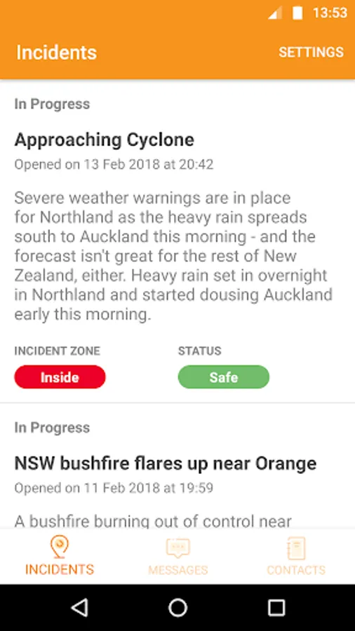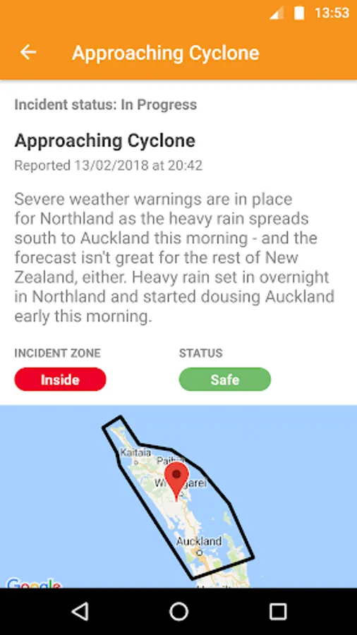 The app uses location data to alert users of an incident in the area and prompt them to confirm whether they are safe or in danger. Messages can be sent to individuals or groups via the app, providing advice, information and regular updates. Emergency contacts can also be viewed in-app if further assistance is required.