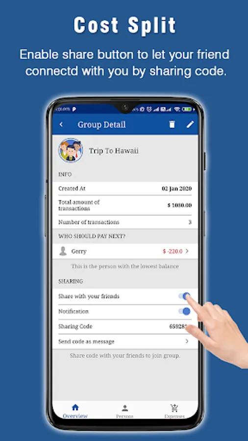 Cost Split is the best bill splitting app to share IOUs and split expenses with friends to make sure that everyone gets paid back.