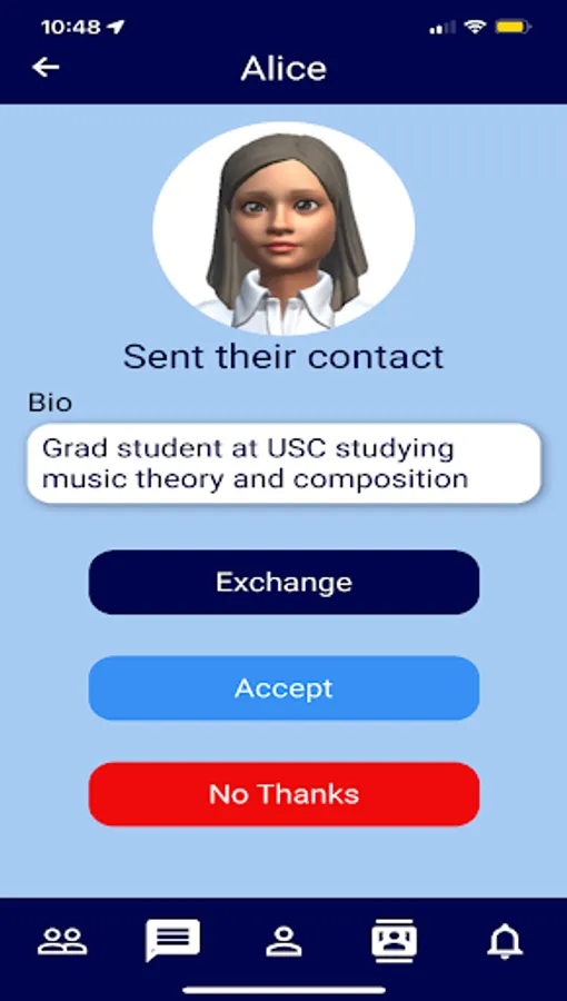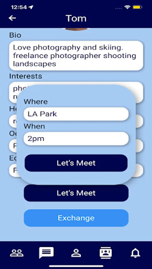 • Choose to meet people with shared, complimentary, or opposing interests or just to have an interesting chat with someone you normally wouldn’t have the chance to talk to.