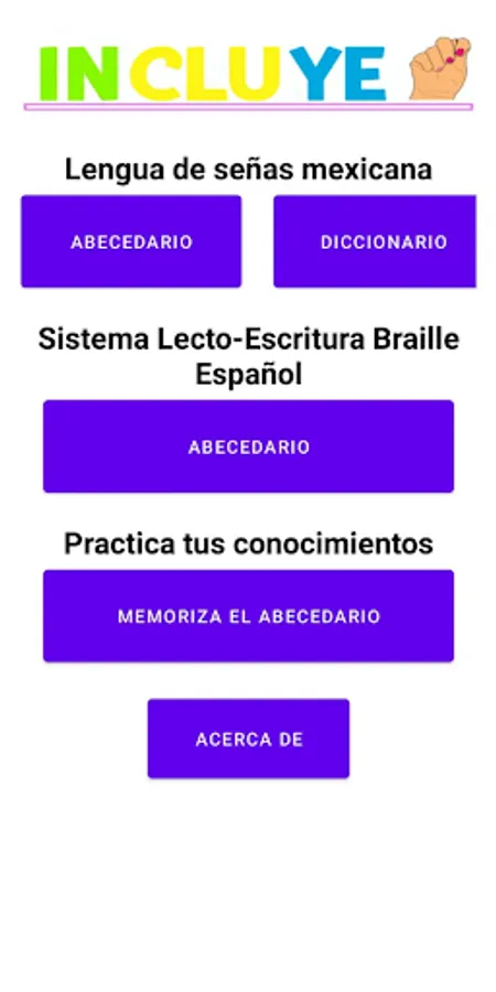 IncludesT: Mexican Sign Language and Braille, is an educational application that will help you learn Mexican sign language and the Spanish Braille system.