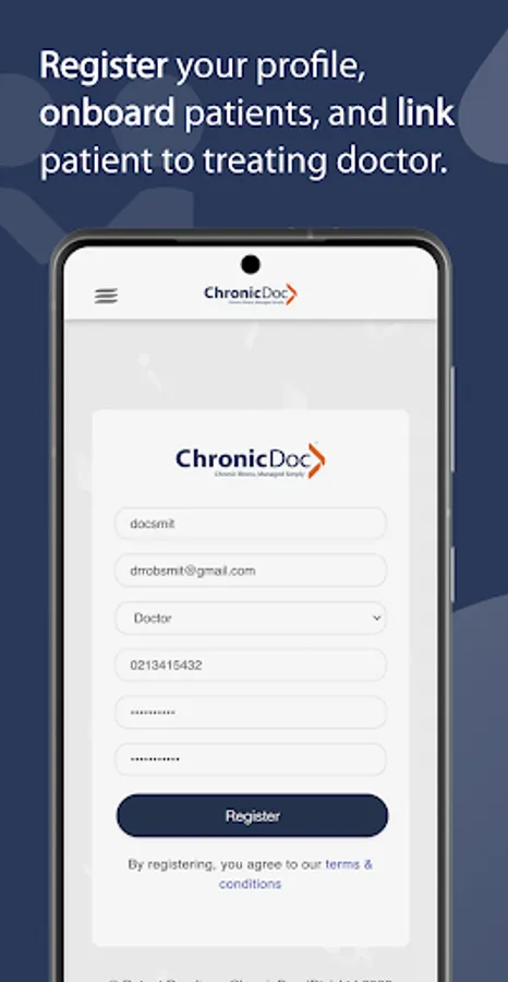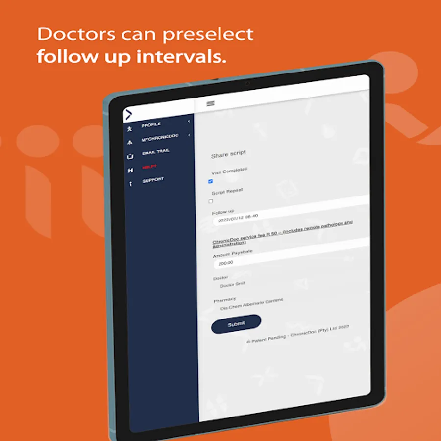 ChronicDoc™ was created as a solution to the administration for patients who suffer from chronic medical conditions. Conceptualized by a general practitioner and taking in to account practical experiences, we aim to provide convenience to both doctor and patient and make the follow up process more efficient. ChronicDoc™ is based on an existing relationship between doctor and patient and automates the entire follow-up process from reminder to script signature and delivery.