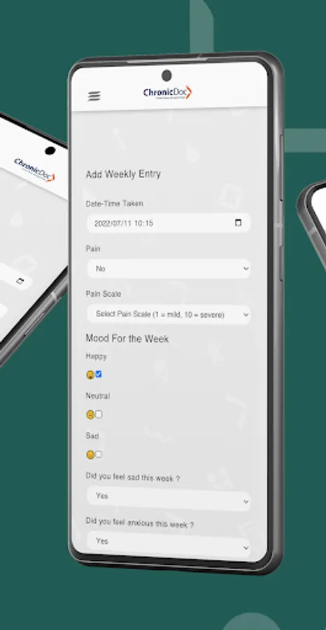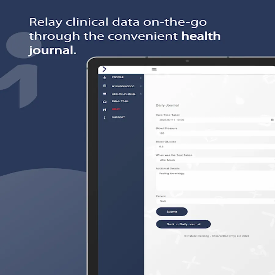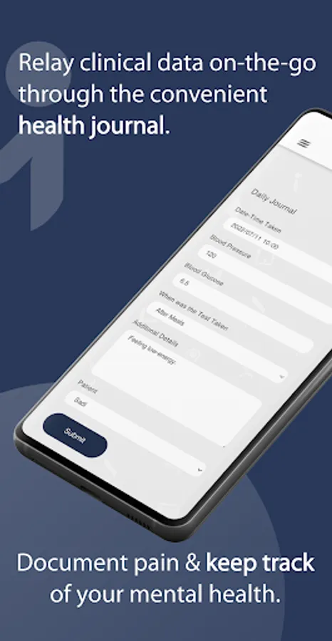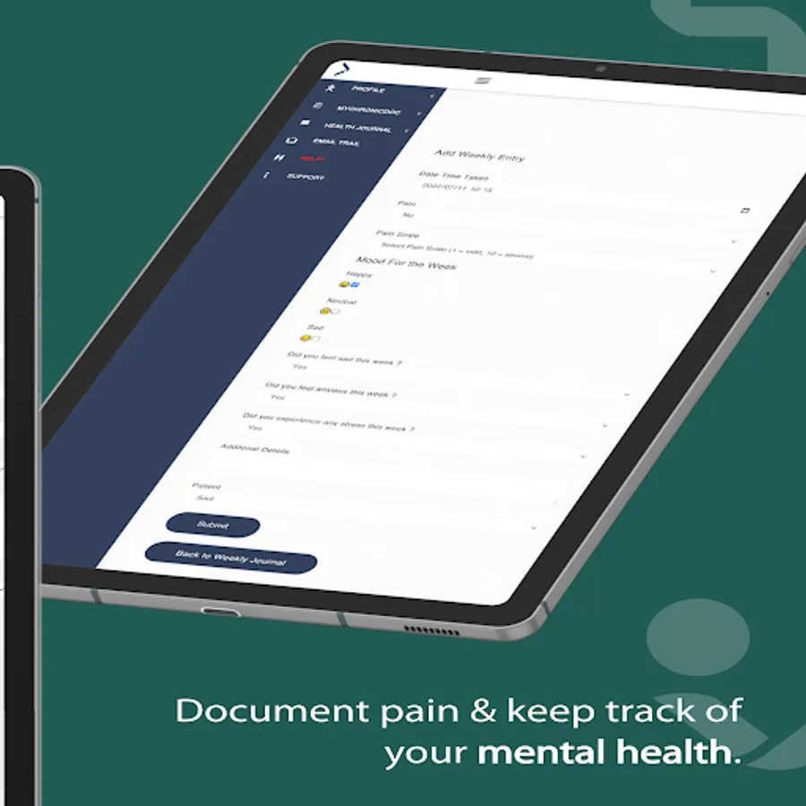 Patients are able to make use of the built-in health journal to document simple health data such as blood pressure and blood glucose. A weekly mental health check-in and pain journal is also included. This helps the doctor decide how well controlled a patient is.