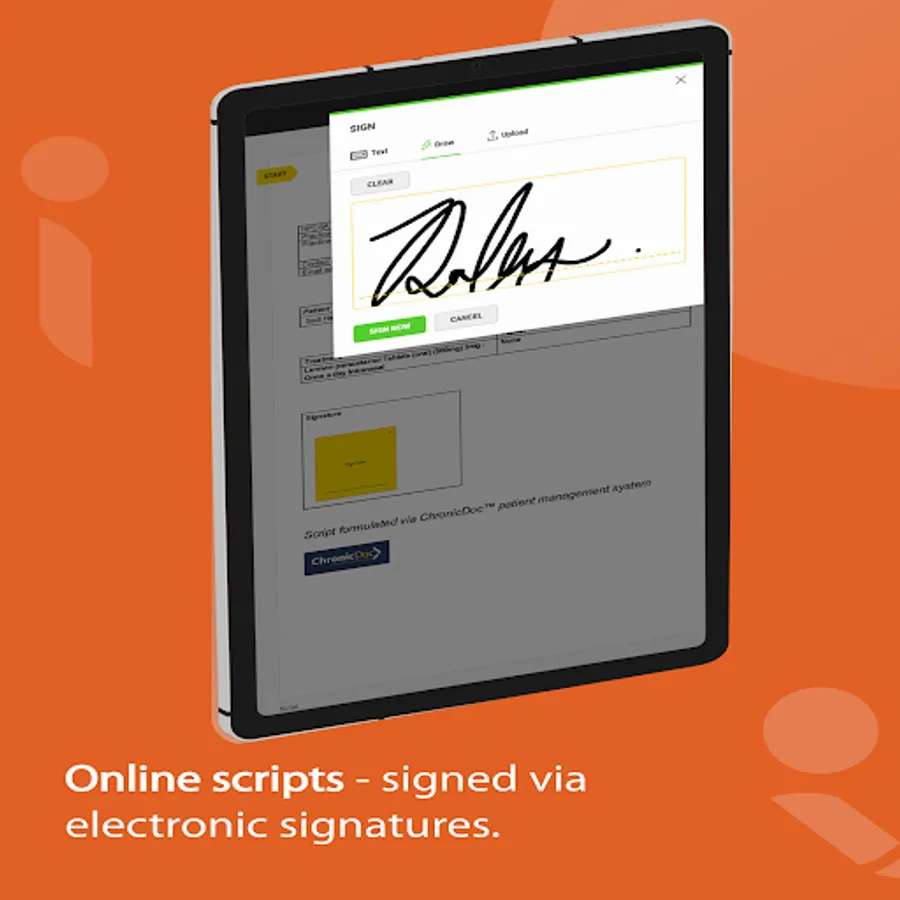 * Paperless scripting for doctors using advanced electronic signatures requiring 2 factor authentication (in-person onboarding required upon registration)