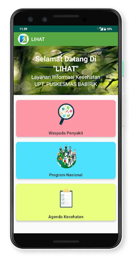 VIEW is a health information service created by UPT. Babirik Puskesmas to provide fast and accurate information services. This service contains 3 main features, namely disease alert (early warning system), a national program (references related to national programs), and a health agenda that contains a schedule of posbindu activities, posyandu, counseling and appeals to the community related to a matter