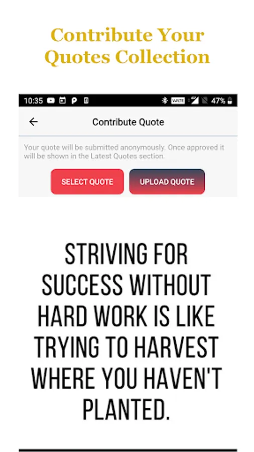 * Now you have the chance of uploading your own quotes collection through contribute section in the app