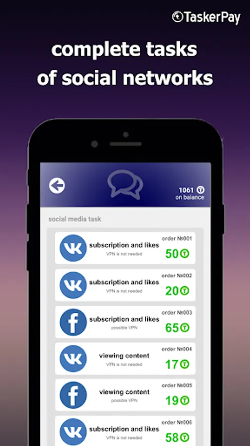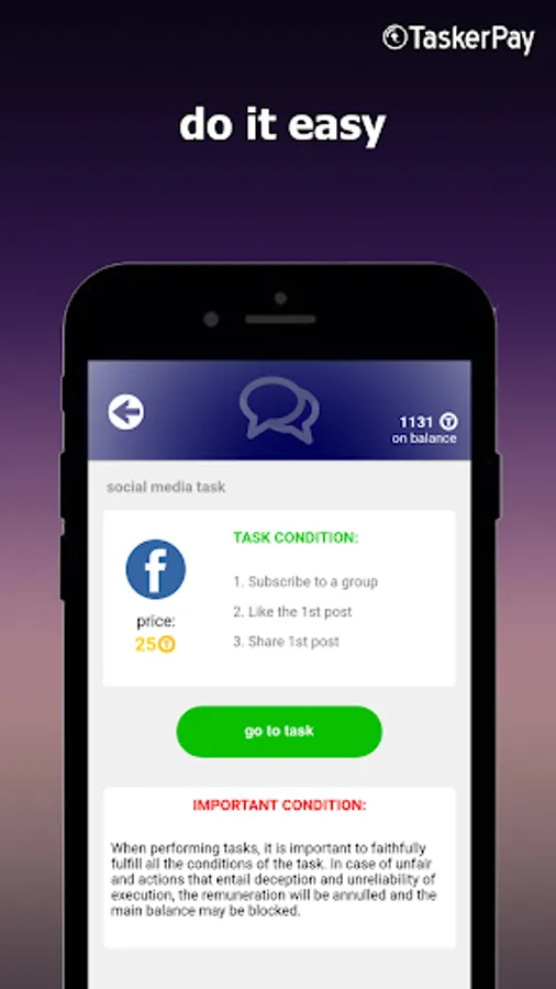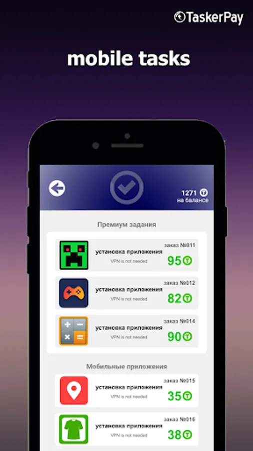 TaskerPay is a mobile application based on performing simple tasks and receiving rewards. We do not require any investments, our application is completely free and suitable for everyone, just complete tasks and earn money in your free time.