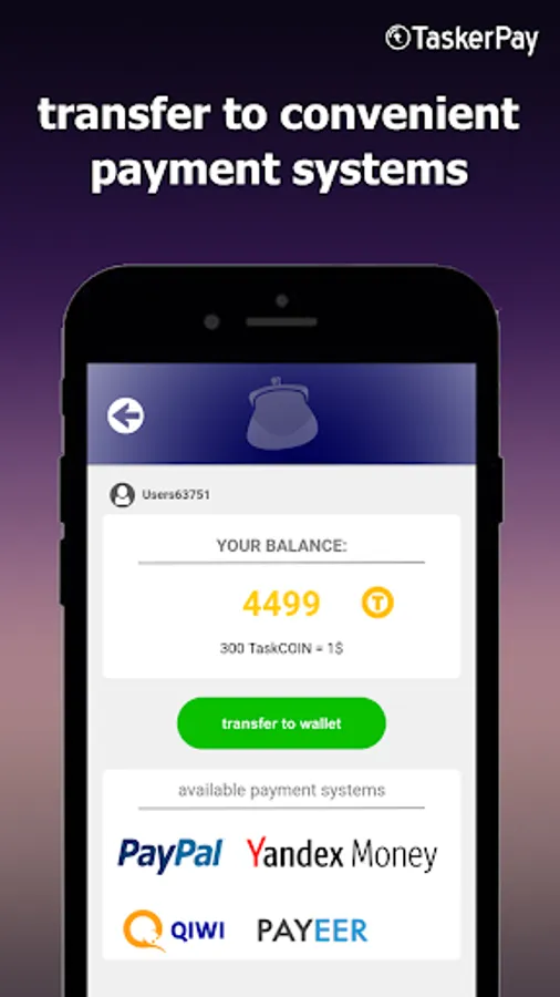 The earned funds can be withdrawn through any payment system available in the application that is convenient for you. (QIWI, Web Money, Yandex Money, Payeer)