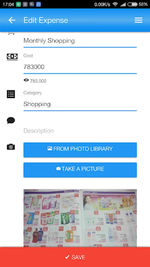 * Manage your Income, Expense, Debt, Lend data with a simple ways. Record date, item, amount or cost, description or notes, and capture photo or pick from gallery for file attachment.