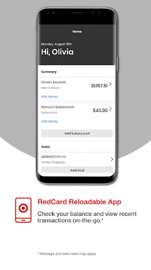 Visit redcardreloadable.com for more information. This app is only for RedCard Reloadable Accounts - for RedCard Debit or RedCard Credit, see Target.com/redcard.