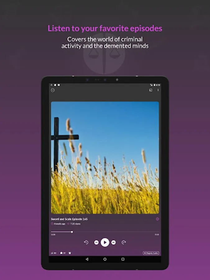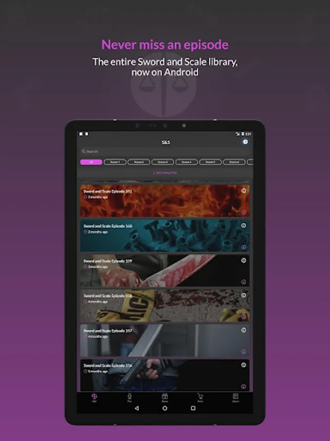 Search and listen for any episode. Make your playlists. Check out Sword and Scale's upcoming release and get notified when a new episode gets released!