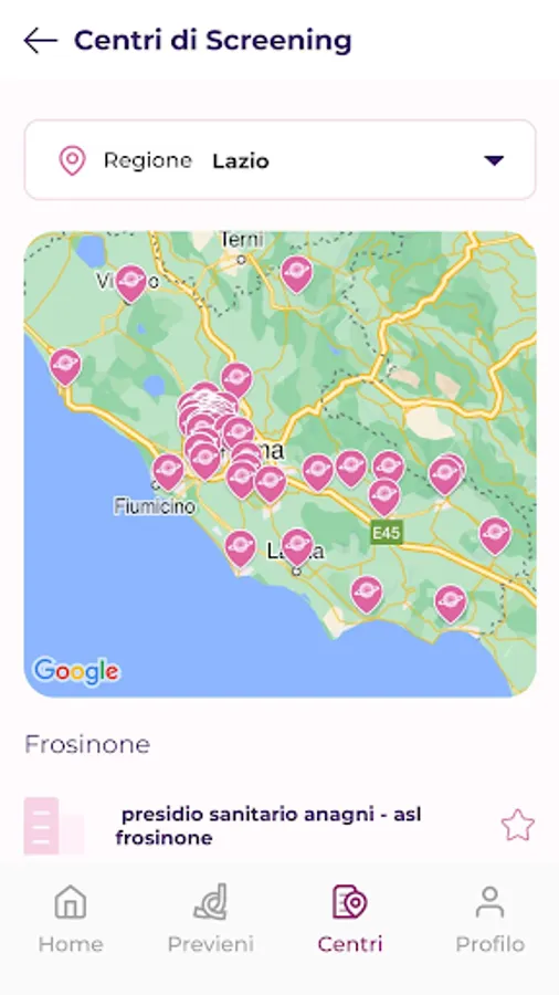 - Visualization, with geolocation, of screening centers and breast centers (official Agenas data)