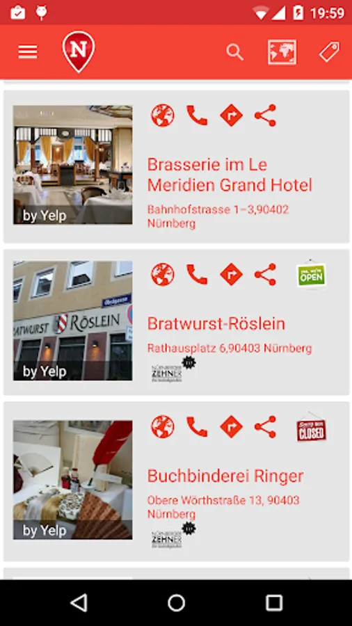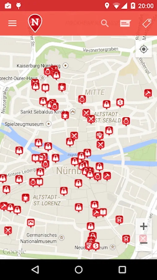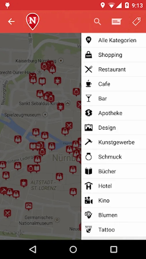 - A map and a list view of all the best businesses for shopping and more in the city centre of Nürnberg inside the app