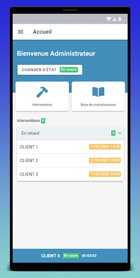 • Management of interventions, after-sales service and maintenance. Do you manage technicians and want to support them as much as possible in their interventions? SmartService is made for your teams. Designed for mobile technicians, it offers real-time access to all the information related to the files to be processed: customer contact details, information relating to the intervention, for easy diagnosis. It allows you to enter the intervention report directly on the mobile or tablet, to complete it with a photo and the signature by the customer before sending. It also allows the ordering of spare parts if necessary. The application has an offline mode which allows data to be stored while waiting for the next connection to the network. Thus, technicians work in optimal conditions, no matter where they work.
