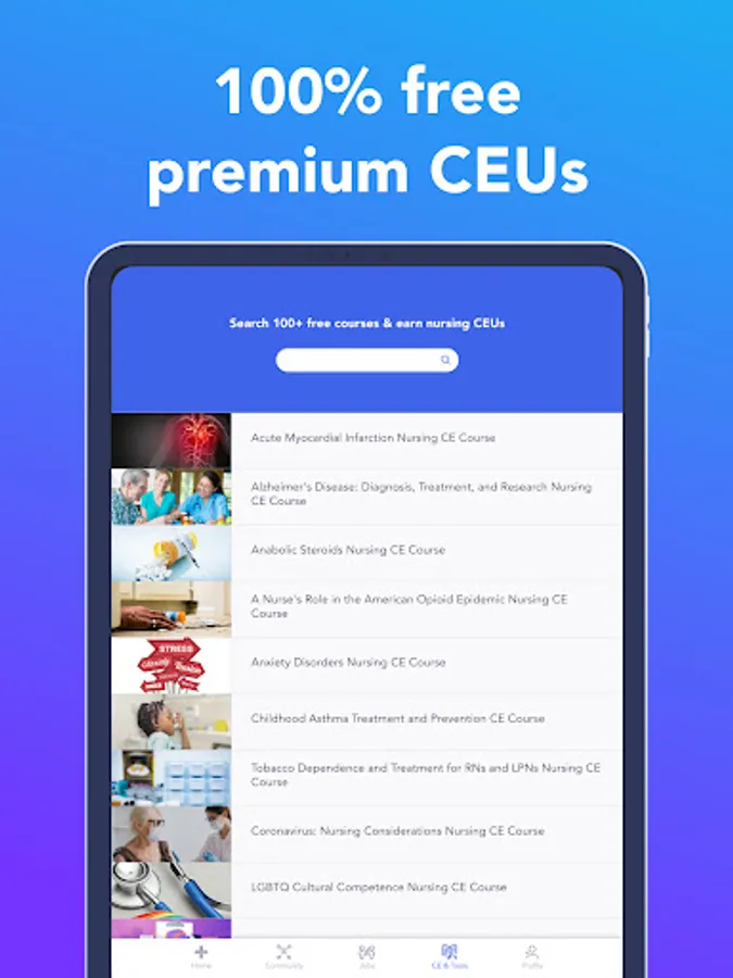 You should never have to pay for CEUs! On Incredible Health, we’re giving them to you 100% free. You get access to a library of premium CEUs that are ANCC accredited in all 50 states. Courses are designed to get you the education you need as quickly as possible, with certificates available for immediate download.